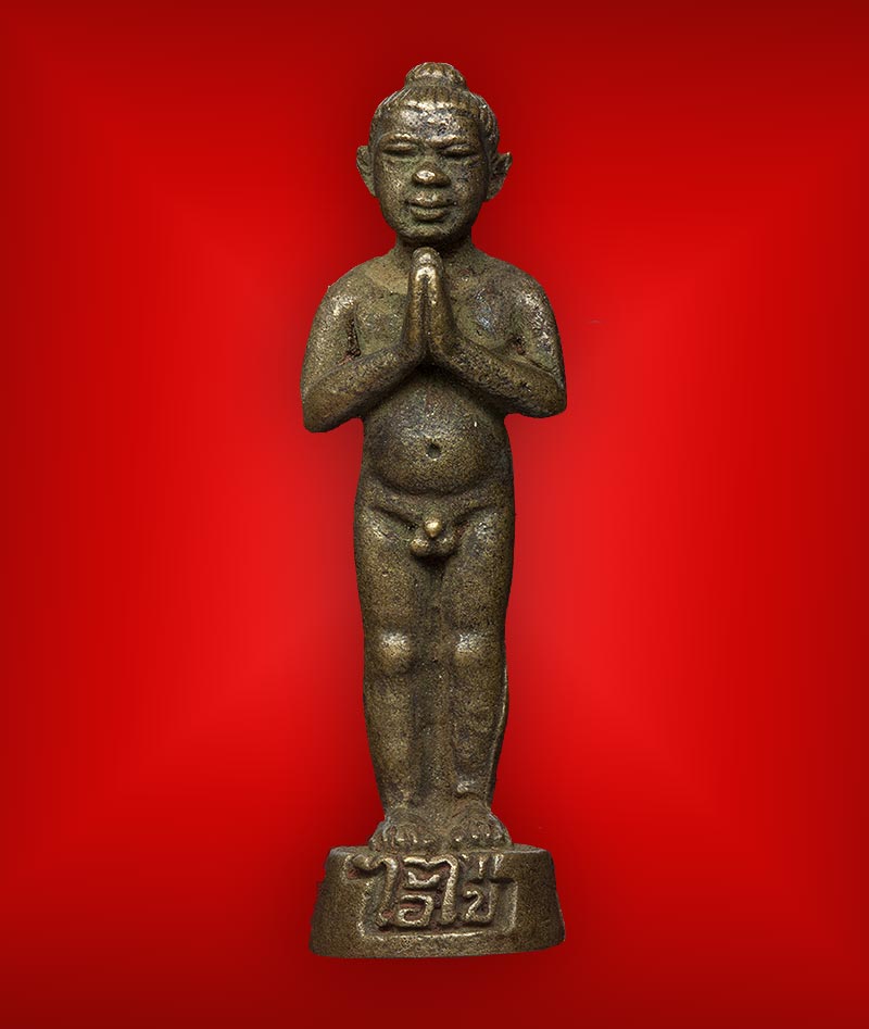 รูปหล่อไอ้ไข่เด็กวัดเจดีย์ รุ่นแรก เนื้อทองเหลือง ปี 2546 จ.นครศรีธรรมราช (ความสูง 3 ซม.)