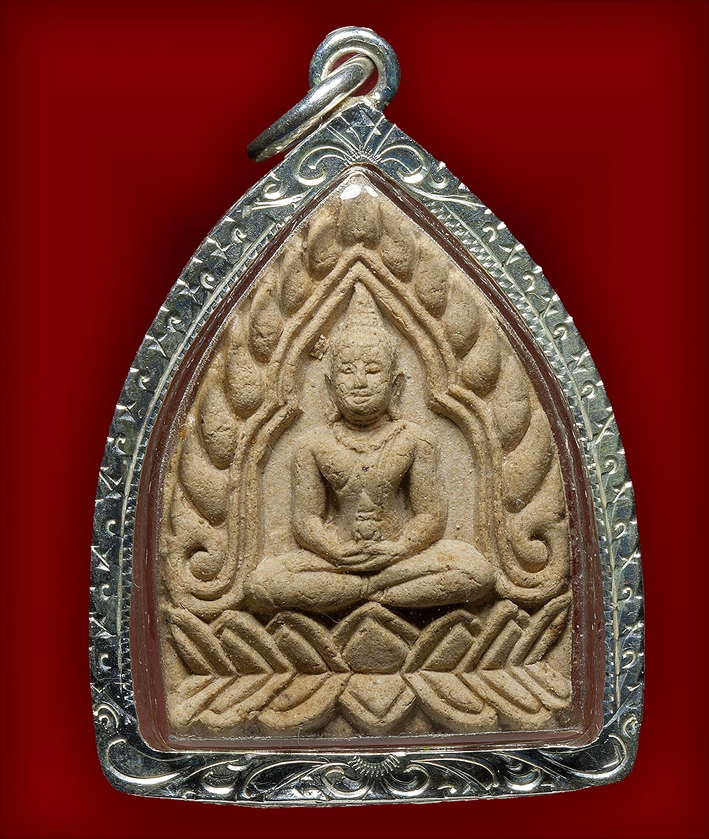 พระขุนแผนหลวงพ่อคูณ รุ่นคูณรวยมหาเสน่ห์ เนื้อผงพุทธคุณ ปี 2536 ตะกุดเงิน 19 ดอก ผสมเส้นเกศา+ยาเส้น+ฝังพลอย+จีวร วัดบ้านไร่ จ.นครราชสีมา