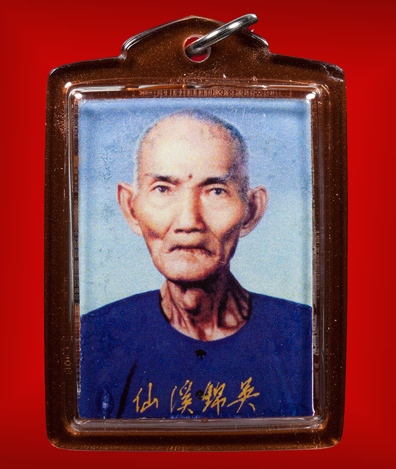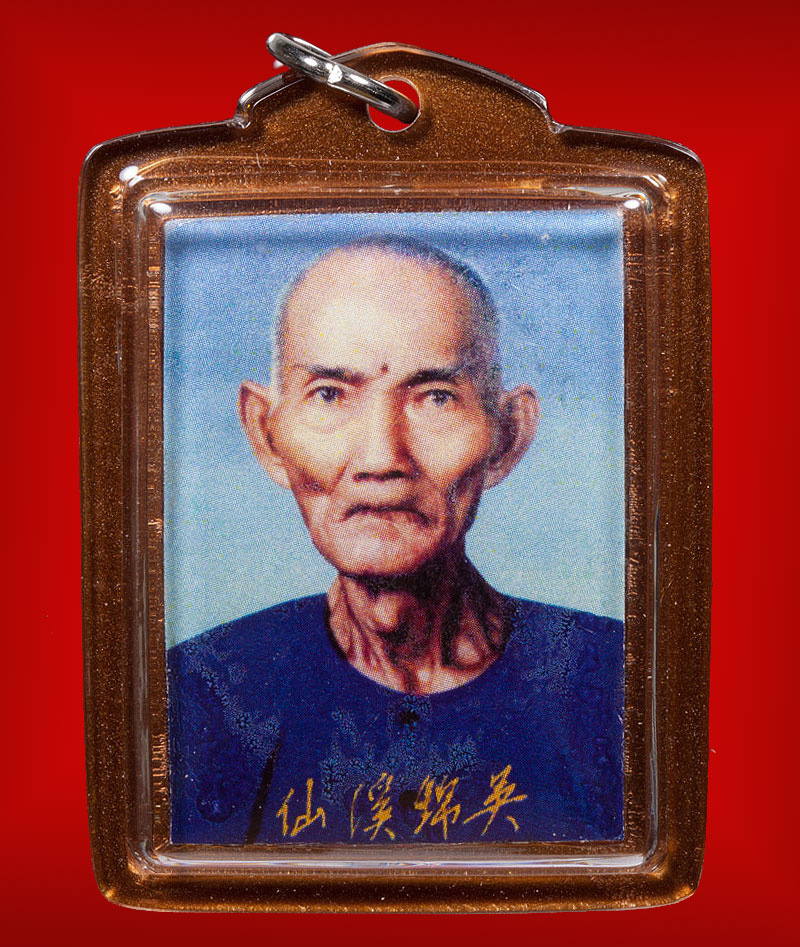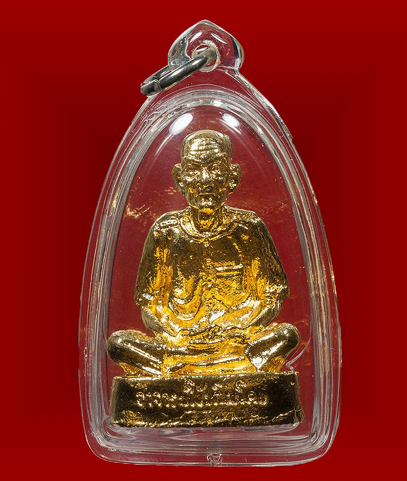 รูปหล่อ อาจารย์โง้วกิมโคย (เซียนแปะโรงสี) หลังยันต์ฟ้าประทานพร รุ่นแรก เนื้อกะไหล่ทอง ปี 2521 จ.ปทุมธานี