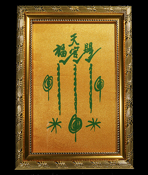 ผ้ายันต์ฟ้าประทานพร อาจารย์โง้วกิมโคย (เซียนแปะโรงสี) ผ้าต่วนมัน ปี 2520 จ.ปทุมธานี