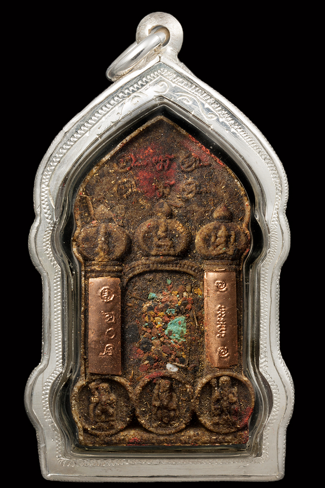 หลวงปู่ทวดลิ้นดำ รุ่นเบิกฟ้า ฝังตะกรุดทองแดง เนื้อผงต่อเงินต่อทอง ปี 2560 วัดเกาะอภินิหาร จ.สงขลา สร้าง 398 องค์ 龙婆托灵丹 仑宝发 接金接银黑神圣粉 12心 红铜符管 佛历 2560 年 瓦哥阿辟尼行寺 宋卡府 督造量 398 尊No.208