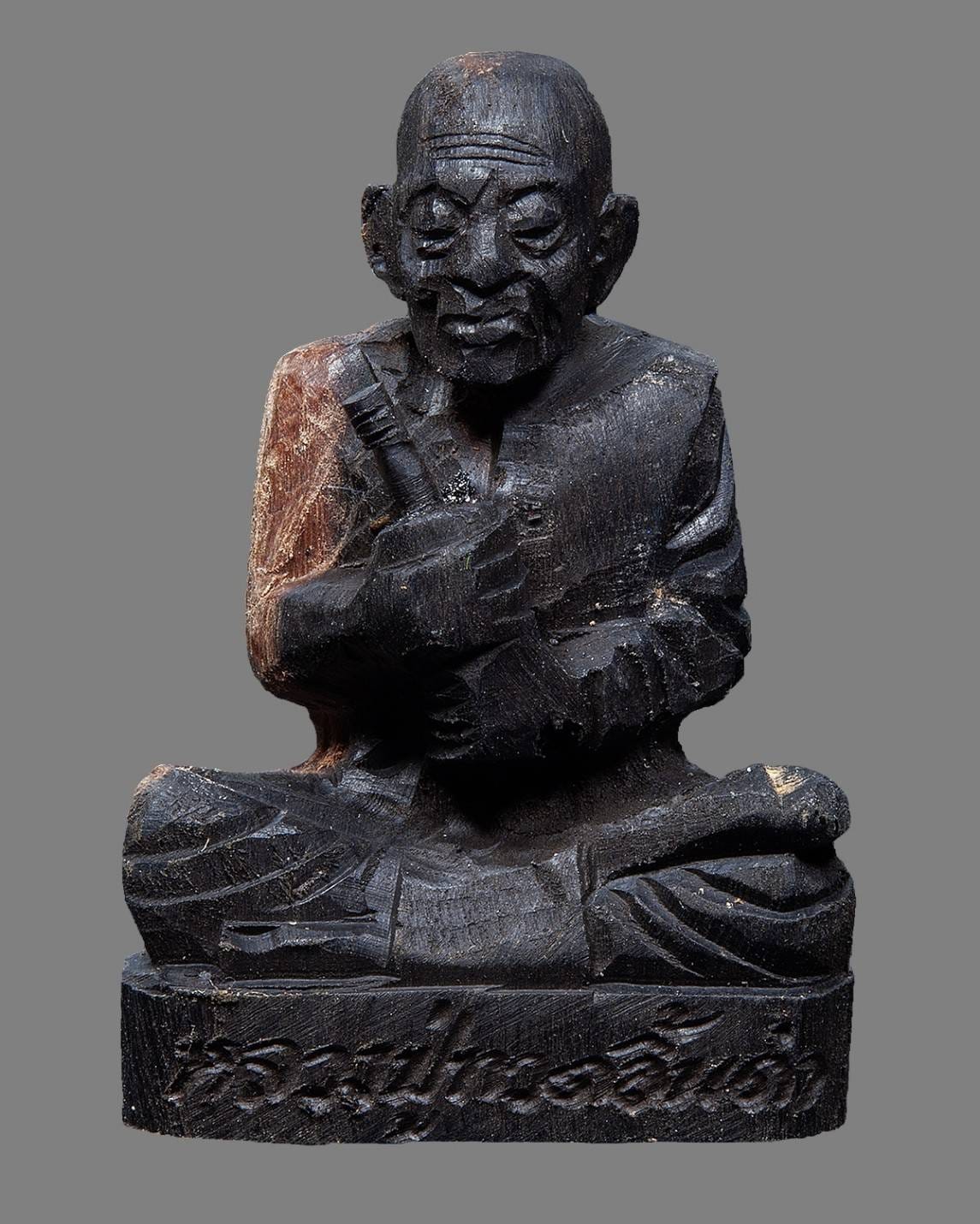 DS028 รูปหล่อหลวงปู่ทวดลิ้นดำ วาจาสิทธิ์ รุ่นฟ้าเบิก สร้างตำหนักท่าข้าม ปี 2564 เนื้อไม้งิ้วดำ จำนวนสร้าง 199 องค์ 小金身龙普托灵丹 哇扎喜 发宝版 佛历 2564 年 黑木材质 发行量199 尊