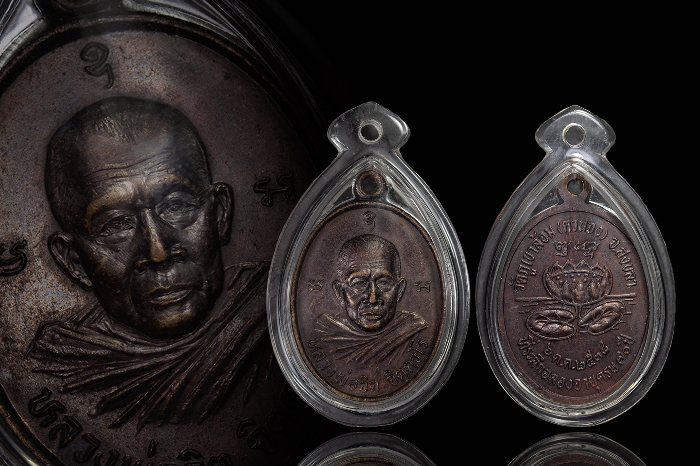 A2/4 หลวงปู่ทวดลิ้นดำ รุ่นเบิกฟ้า ฝังตะกรุดทองแดง เนื้อผงต่อเงินต่อทอง ปี 2560 วัดเกาะอภินิหาร จ.สงขลา สร้าง 398 องค์ 龙婆托灵丹 仑宝发 接金接银黑神圣粉 12心 红铜符管 佛历 2560 年 瓦哥阿辟尼行寺 宋卡府 督造量 398 尊