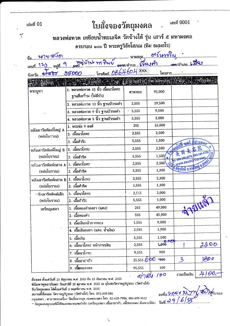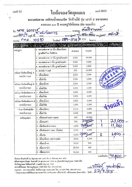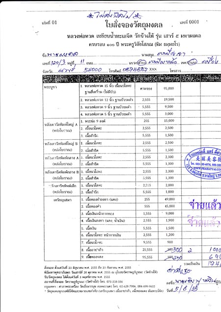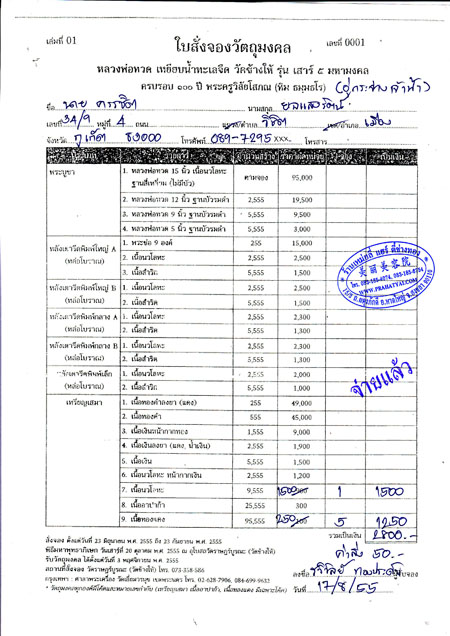 � หากยังไม่รับบิล� ายใน7วัน หลังจากได้จองพระ